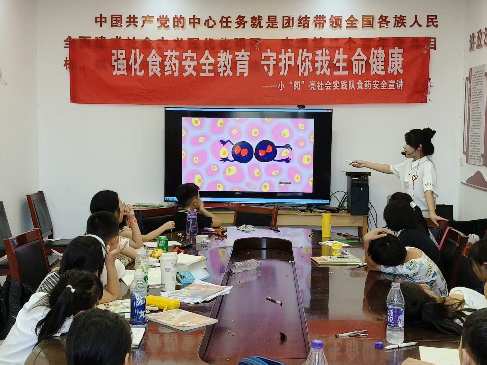 在乡村校园主战场上,实践队员化身专业“安全卫士”,将晦涩的食品安全知识转化为趣味课堂。针对儿童群体对零食的偏爱,队员们以图文并茂的形式,结合典型案例,系统剖析高油、高盐、高糖食品对青少年身体发育的潜在危害。在汝阳县昌村小学,队员通过播放碳酸饮料对牙齿的腐蚀过程视频,引发学生热烈讨论;在新安县陈村小学,以“零食王国的秘密”故事,引导孩子们理性选择健康食品。