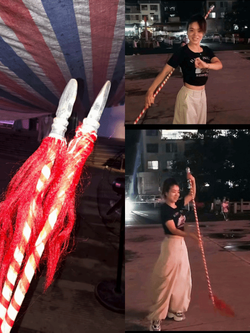 后台比前台更像“故事场”。常姚姚老师拿着红缨枪给我们演示“枪花”,枪杆转得像风车,枪缨却稳稳贴着手心:“这是《包公辞朝》里杨宗保的招式,得练到‘枪随人走’。”她的指甲盖边缘有层薄茧,“握枪握的,磨掉了又长出来。”