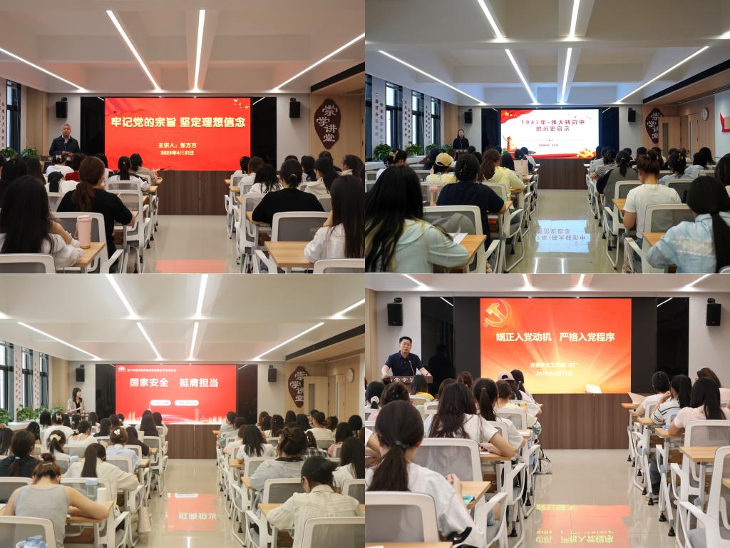 4月21日至5月22日,龙门书院2号学生社区在崇学讲堂开展2025年上半年入党积极分子党课培训。本次党课培训共有9名校院两级党政干组成讲师团,面向80名入党积极分子开展系统性教育培训。
