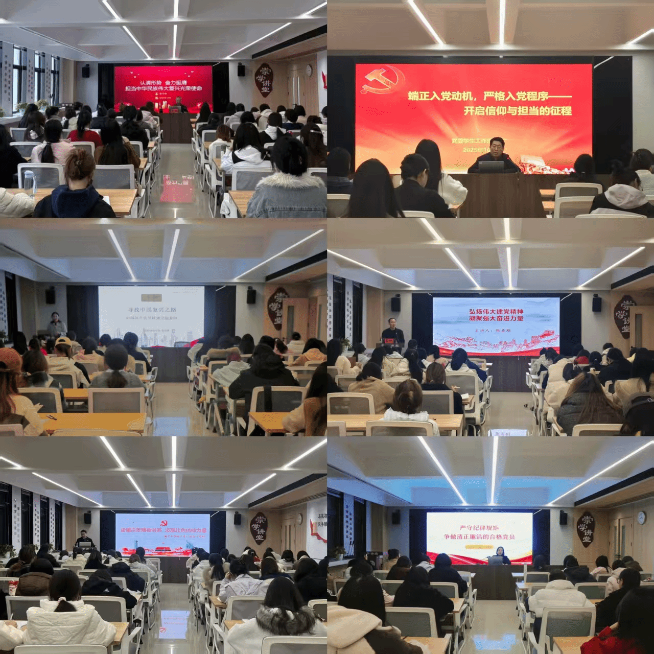 书院党委书记张方方以“党的宗旨是什么、为什么、怎么办”为题,结合“十五五”规划与党的百年奋斗目标,深入剖析当代有志青年在“十五五”规划谋篇布局之年的实践路径,引导学员们深刻理解党的宗旨与国家发展、民族复兴的内在联系。书院院长韩守东系统梳理了建党以来党员标准的历史演变,详细解读了入党条件与党员义务,回顾了党的建设历程,又对新时代入党积极分子提出了“坚定信仰、锤炼本领、勇于担当”的明确要求。校党委组织部副部长张亚刚以“弘扬伟大建党精神 凝聚强大奋进力量”为题,从伟大建党精神的形成背景、核心要义出发,强调了坚守共产主义远大理想和中国特色社会主义共同理想的重要性,深入阐述了新时代弘扬伟大建党精神的重大意义。校党委学生工作部副部长李广以“端正入党动机,严格入党程序”为题,讲解了入党动机的核心内涵、规范入党程序的关键环节,引导入党积极分子树立正确信仰,以实际行动践行担当,为入党做好思想与程序准备。校纪检监察机构综合室副主任孙欢欢紧扣“廉洁、纪律、规矩”三个关键词,强调纪律是党的生命线,引导学员不仅要在组织上入党,更要在思想上和行动上以党员标准严格要求自己,强化政治意识、法治意识和底线意识,在实践中锻造清正廉洁的钢铁意志。