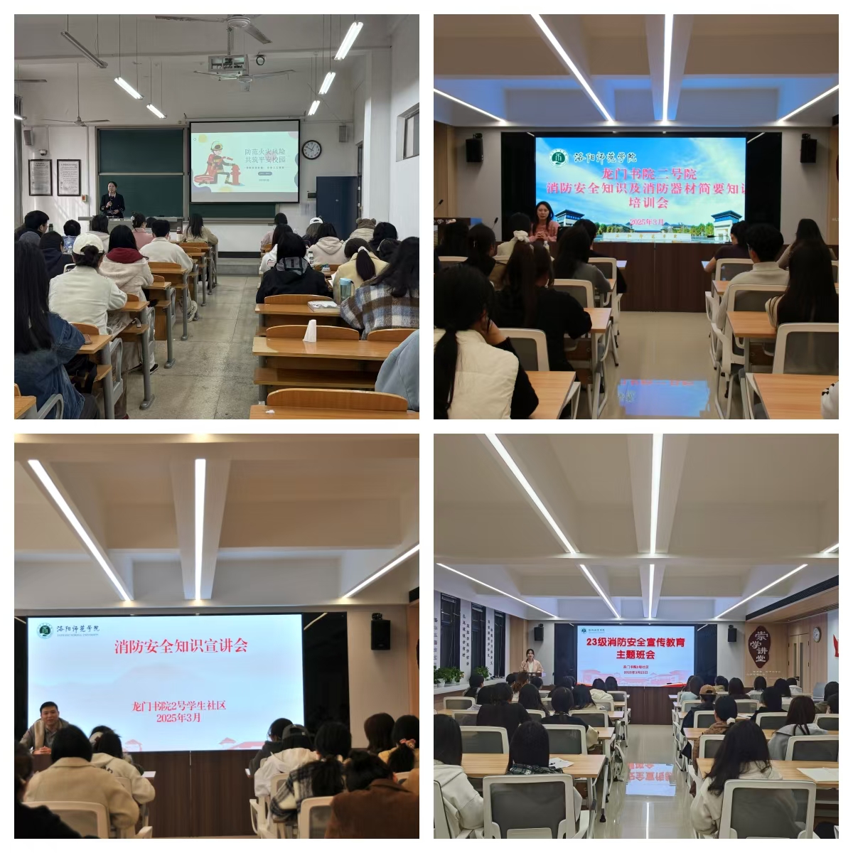 3月27日下午,书院社区特邀河南省消防协会教员王玉琪为书院2024级全体学生做消防安全知识讲座。他以近年来省内外发生的典型火灾事故为切入点,详细介绍了火灾的危险性、防火基本措施及灭火器、消火栓等常见消防器材的正确使用方法,夯实学生消防安全理论基础。