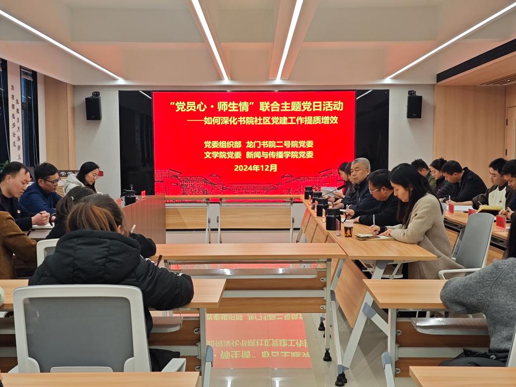 12月10日下午,校党委组织部联合龙门书院二号院党委在崇学讲堂开展“党员心·师生情”主题党日活动。校党委组织部部长索秋平、副部长李庆辉、张亚刚及龙门书院二号院班子成员、书院党支部书记及支委代表参加。