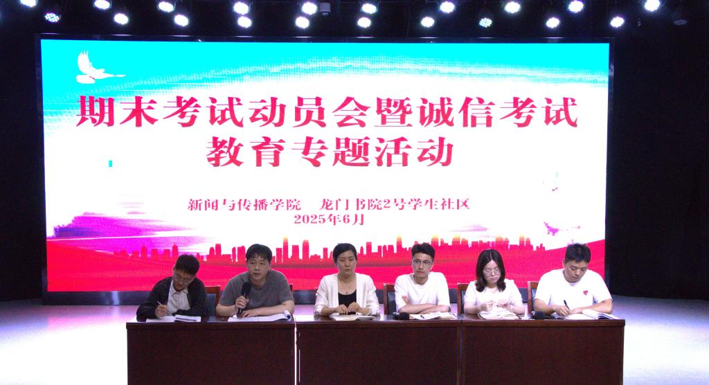 为严肃考风考纪,筑牢诚信根基。我院联合龙门书院2号学生社区于6月12—18日期间开展期末考试动员会暨诚信考试教育专题系列活动。