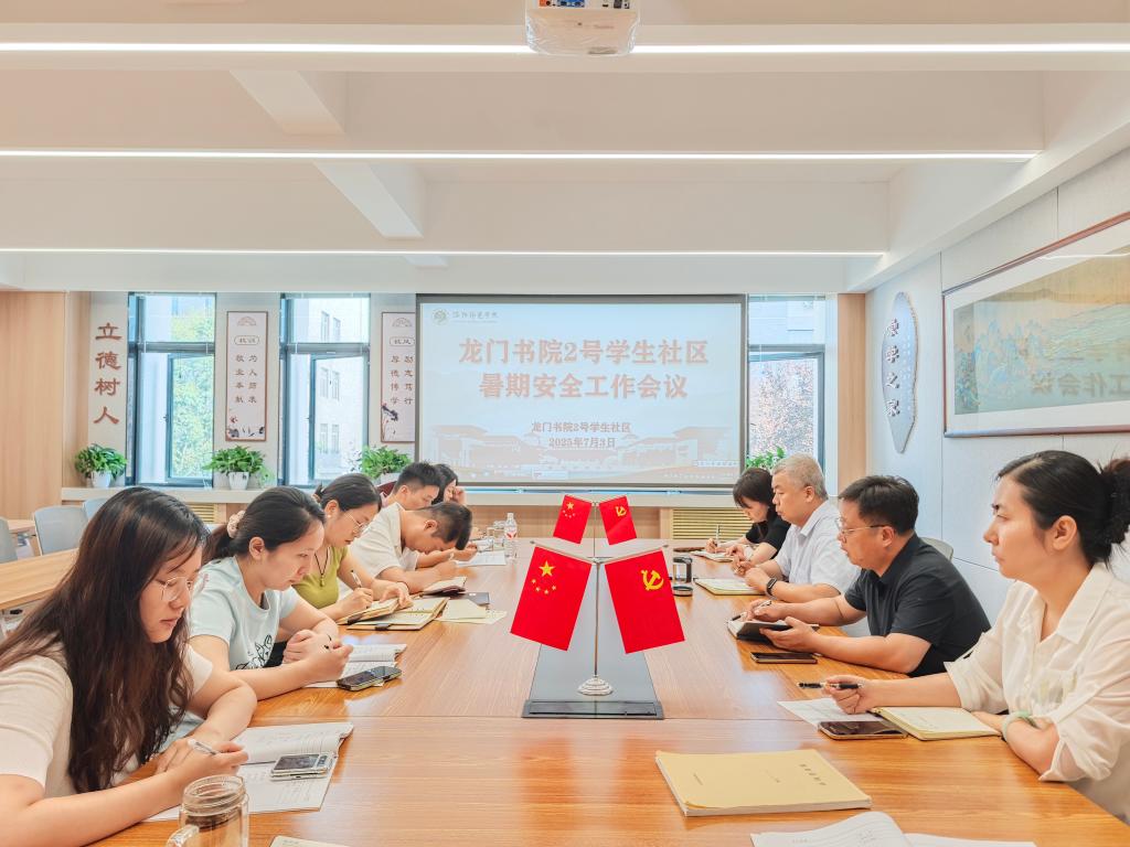 党委书记张方方通报了几项书院社区重点工作完成情况:一是龙门书院2号学生社区网站如期高标准建成投入运行;二是在2024-2025 学年,书院社区荣获“先进基层党组织”荣誉称号。随后,他结合书院社区暑期安全工作要求强调,育人导师(辅导员)要切实掌握学生假期留校、离校学生动态,加强家校联系,做好突发事件的预防工作和应急预案,并提出三点要求:一是提高政治站位,自觉落实各项纪律要求;二是严格值班值守,筑牢书院社区安全防线;三是强化留校学生管理,加强沟通交流和人文关怀。