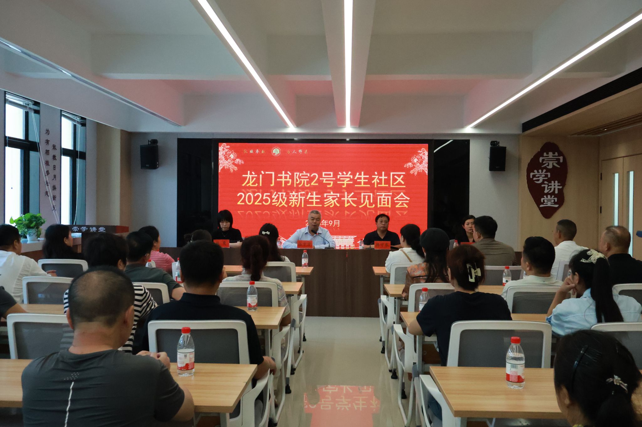 为深化家校协同育人,助力2025级新生顺利适应大学生活,9月13日下午,龙门书院2号学生社区在崇学讲堂召开2025级新生家长见面会。龙门书院2号学生社区领导班子成员及新生家长代表共同参加见面会。会议由书院社区党委副书记张曼主持。