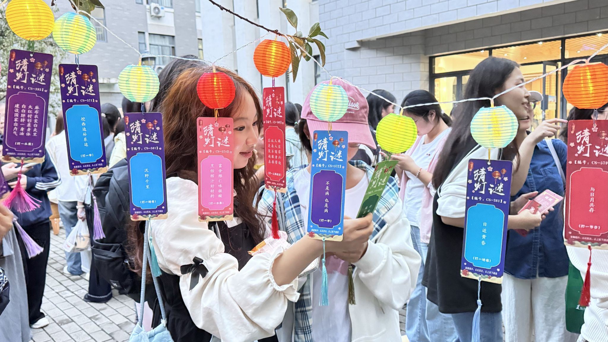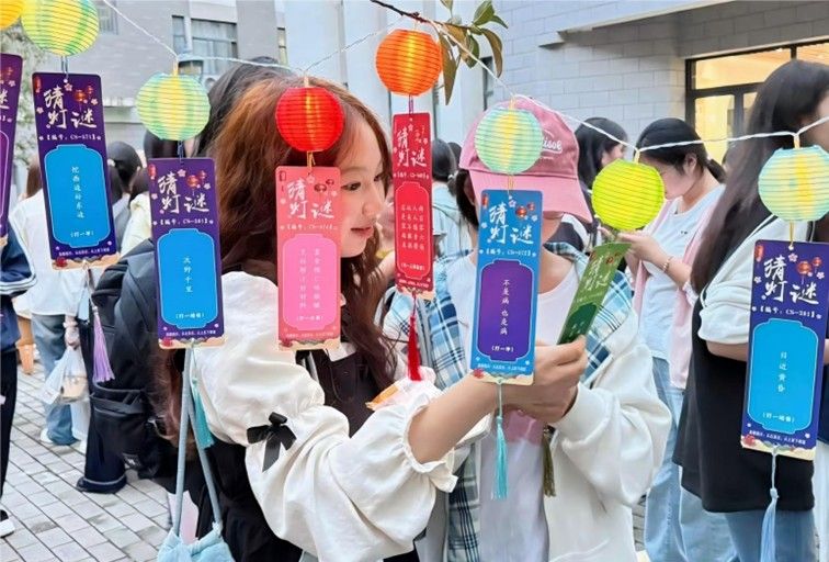 本次系列活动精心设计“猜灯谜”“海底捞月”“巧手制灯迎中秋”三个环节。傍晚时分,书院内院灯笼高挂,“猜灯谜”活动吸引众多同学驻足。谜题涵盖文化常识、诗词典故等,融趣味与知识于一体,同学们积极参与其中,现场互动热烈。“海底捞月”挑战区,参与者需用筷子夹起水中玻璃球,趣味竞技点燃欢乐氛围。“巧手制灯迎中秋”活动在此刻同步进行,学生们运用DIY材料创作灯笼,将优秀作品赠予书院教师传递感恩之情。