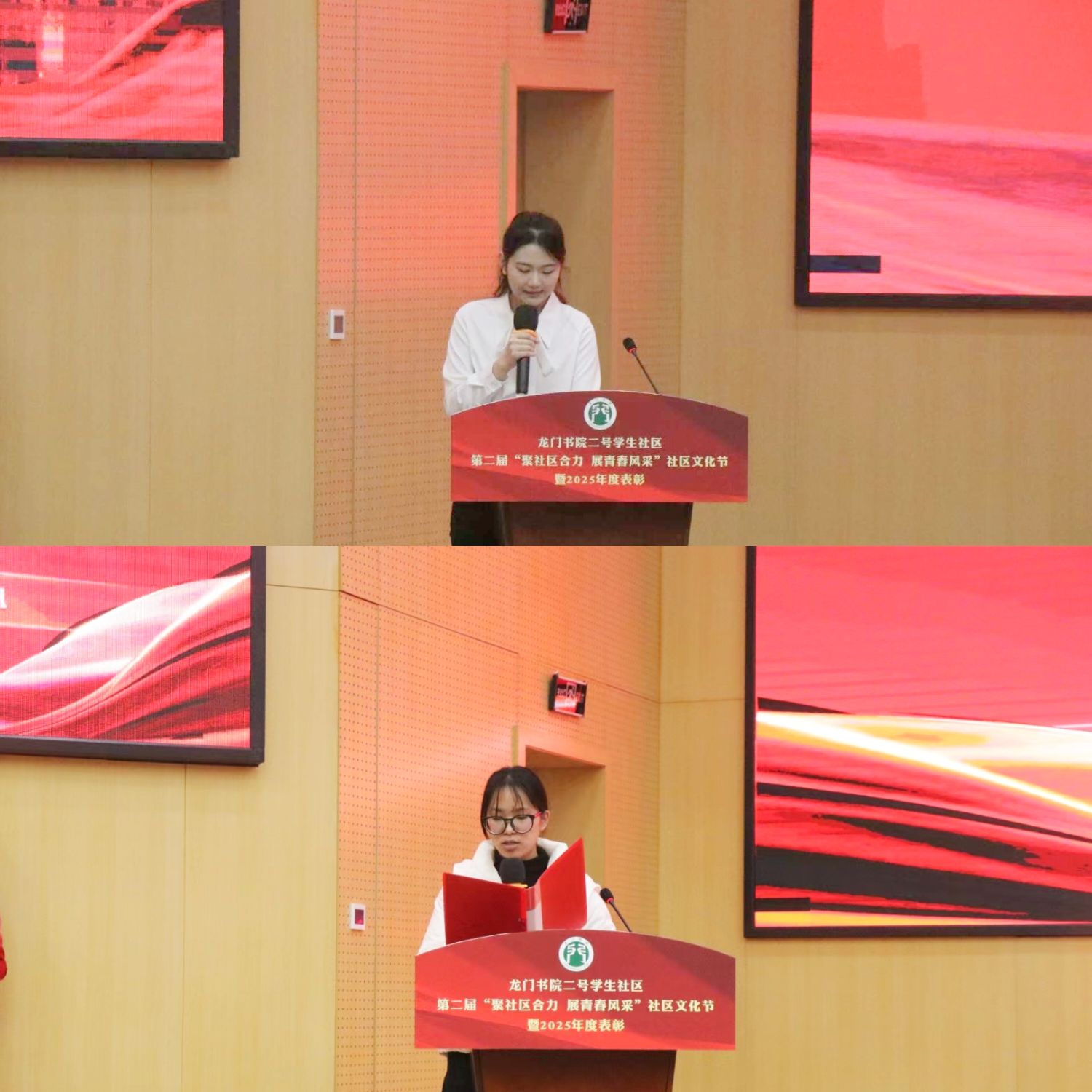 12月11日下午,龙门书院二号学生社区在逸夫教学楼G1-112报告厅举办第二届“聚社区合力 展青春风采”社区文化节暨2025年度表彰活动。校纪委书记、监察专员练忠杰,党委组织部、党委宣传部、党委统战部、党委学工部、党委保卫部、后勤处等有关部门负责人出席活动。龙门书院二号学生社区全体领导班子成员、全体育人导师、学生代表等380余人参加活动。活动由龙门书院二号学生社区党委书记张方方主持。