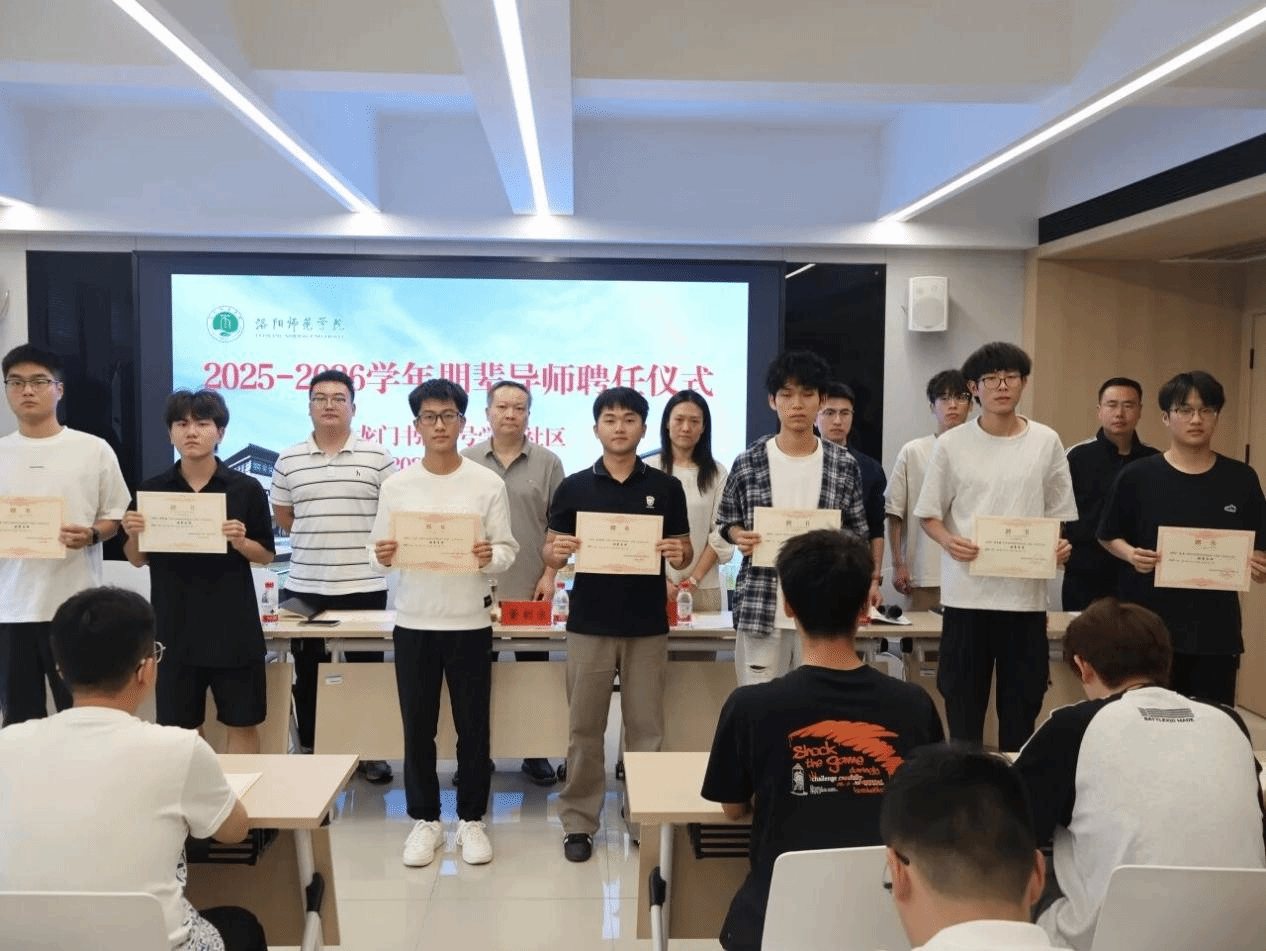 聘书颁发环节,与会教师逐一为54名朋辈导师颁发聘书并合影留念。随后,受聘学生代表在发言中表示,将不负期望、全力奉献,展现龙三学子昂扬向上的精神风貌。