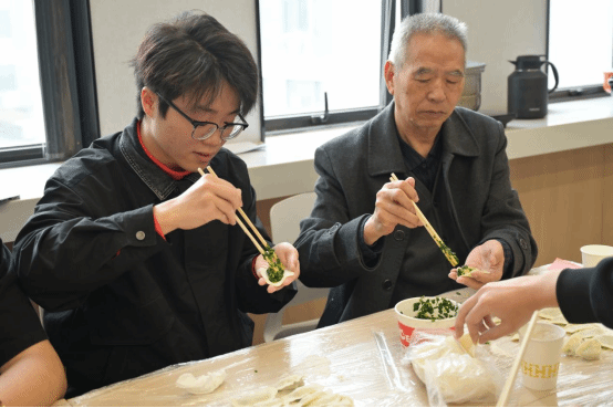 锅中水汽蒸腾,饺子上下翻飞。当第一锅热气腾腾的饺子出锅时,师生们共同品尝这份合作的美味。张辛卯教授动情地分享到:“看到同学们青春洋溢的脸庞,让我想起了自己几十年前的教学生涯。教育是一场温暖的接力,今天的活动让我感受到了这种接力的温度。同学们,你们要珍惜大学时光,像包饺子一样,认真对待每一个环节,终将收获人生的圆满。”