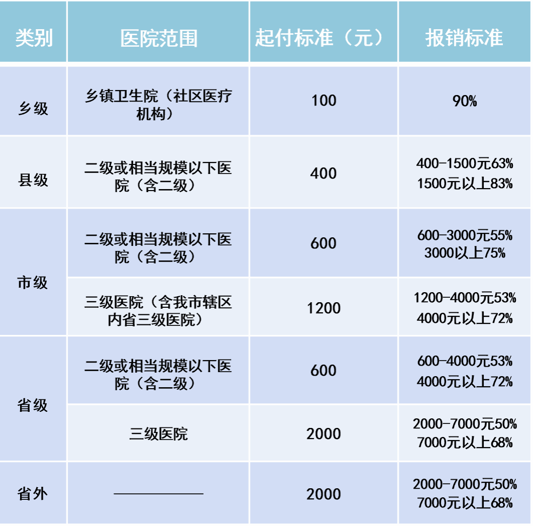 (住院起付标准及报销比例)