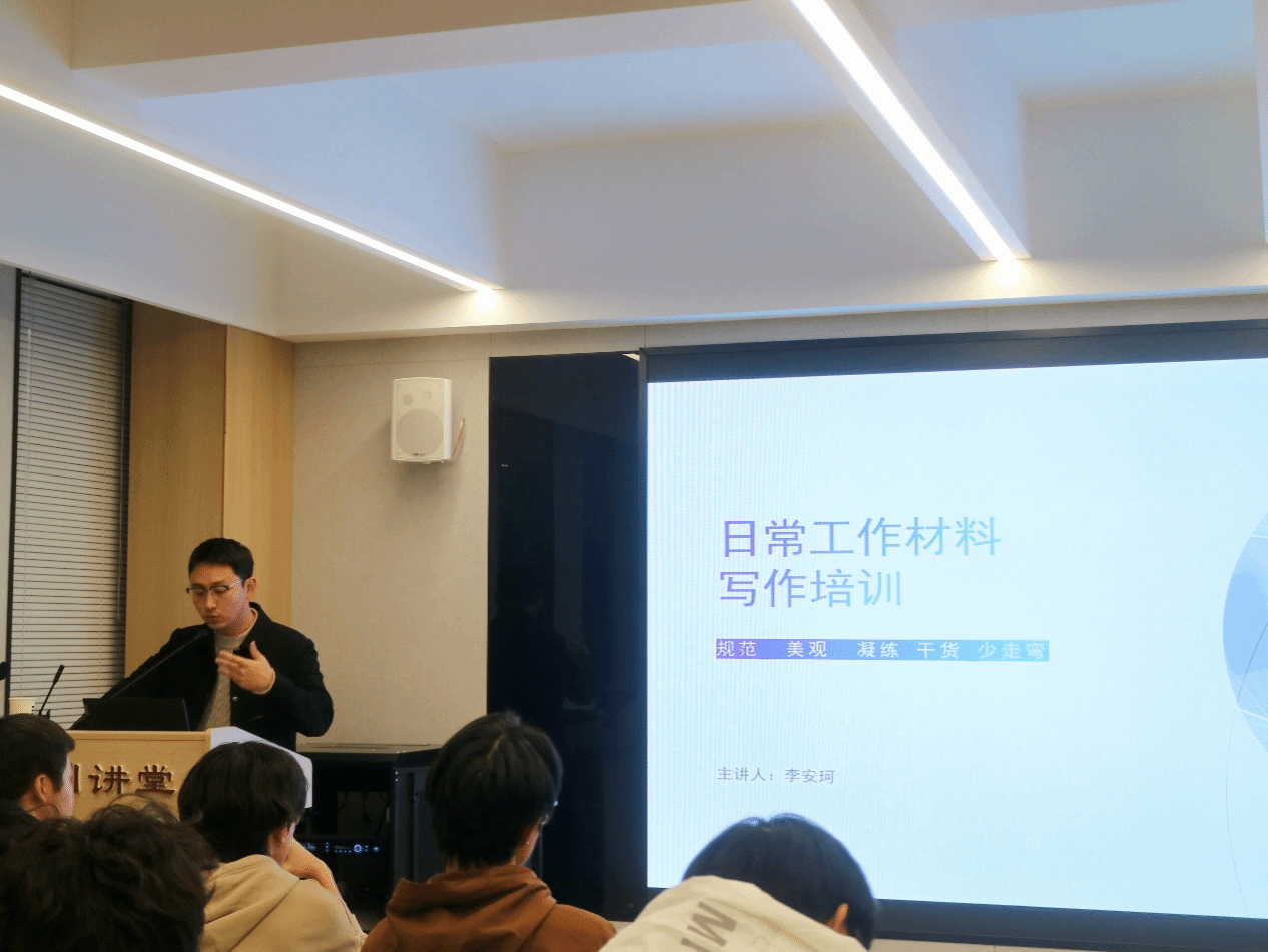 在实践能力培养方面,书院党委副书记马天天就如何在社区建设中发挥模范作用进行了生动讲解,育人导师李安珂开展的写作规范实训课程,提升了学生的实务工作能力,育人导师薛雅琪则对入党材料规范和“十个一”培养考核机制作了详细说明。这些课程注重实际应用,使学生们掌握了必要的实践技能。