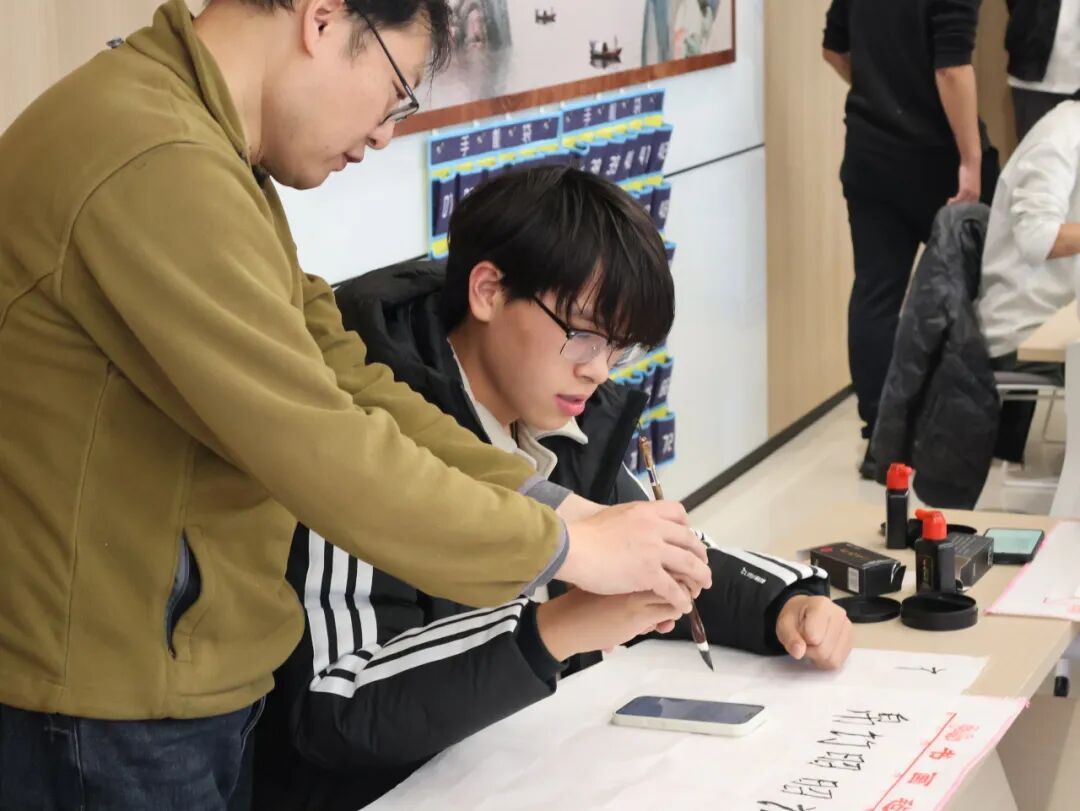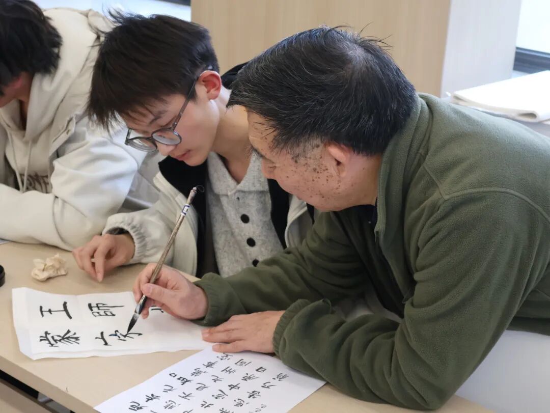 “落笔需稳,运笔贵活。”曹建立博士重点关注同学们的书写实践,从执笔姿势、运笔方法等基础环节入手,对参赛者进行个性化的手把手指导与纠正,帮助大家掌握正确的书法要领,夯实技法根基。两位老师的悉心点拨,赢得了同学们的阵阵掌声。