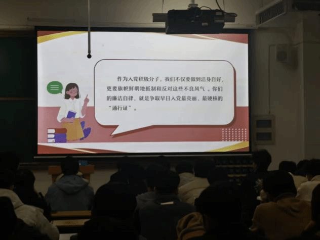 党课伊始,“廉洁、纪律、规矩”三个关键词醒目呈现于大屏幕,明确了学习重点。孙欢欢紧扣入党积极分子的思想实际,指出“组织上入党是起点,思想上入党是终身课题”,强调纪律与廉洁是检验“思想入党”的重要标尺。