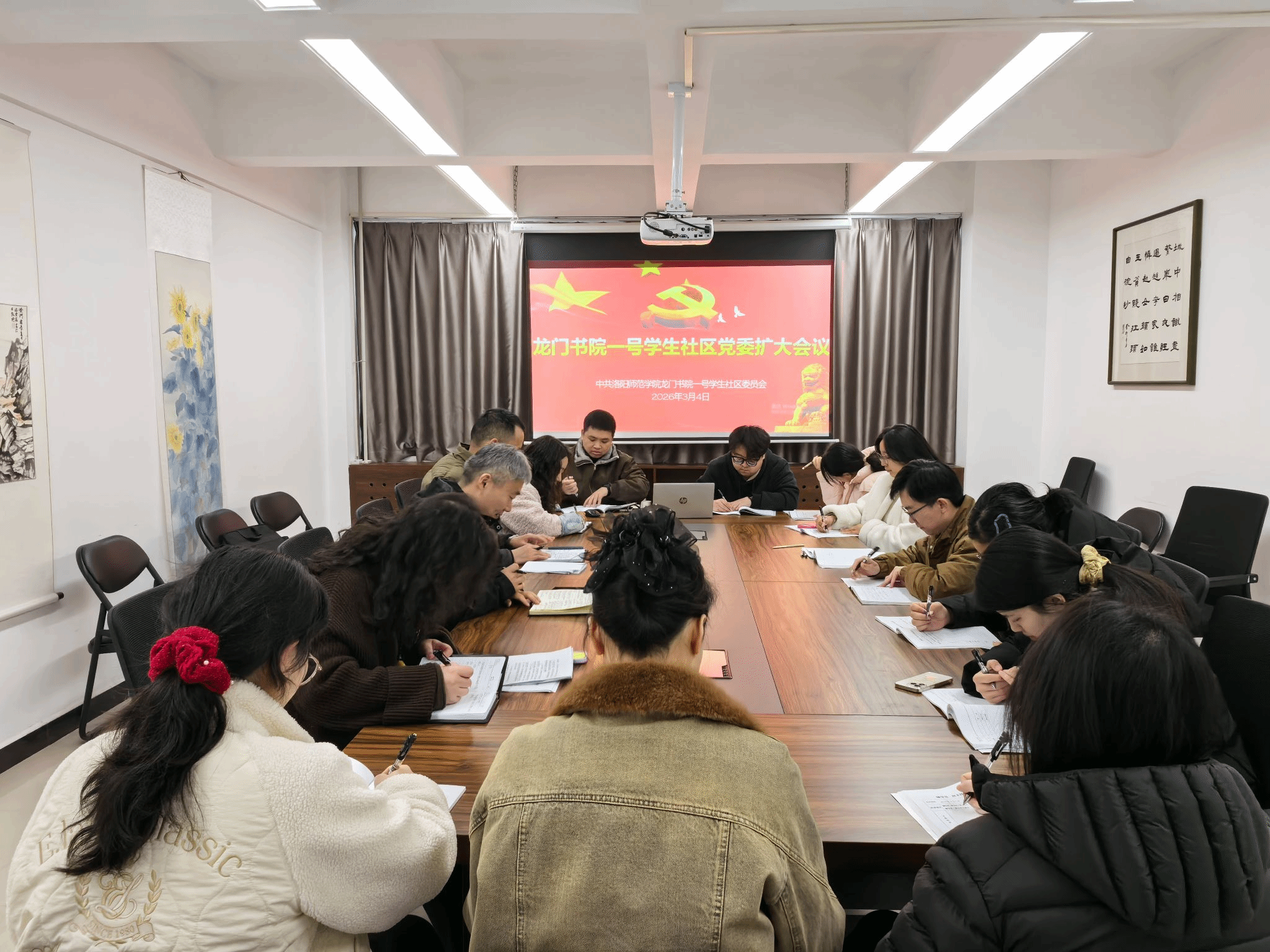 3月4日,龙门书院一号学生社区党委扩大会议在二楼多功能会议室召开,专题研究部署树立和践行正确政绩观学习教育工作。社区领导班子、各支部书记、全体育人导师出席会议,党委书记刘振中主持会议。