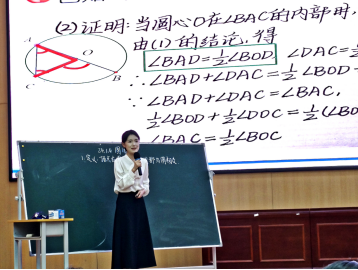 地理与旅游学院的王雯靖以扎实的学科功底与流畅的课堂互动设计,生动演绎教学内容,以文科组第二名的成绩展现出文科教学的感染力;历史文化学院的胡维雪聚焦学生思维培养,通过丰富案例层层引导知识理解,其教学思路获评委高度认可,摘得文科组第三名;数学科学学院的王子轩讲授《圆周角》课程时创新讲解方式,将抽象知识具象化,成为全场亮点,最终摘得理科组桂冠,并在颁奖现场代表理科组进行教学展示。她们以亮眼的成绩荣获第三十三届“十佳未来教学明星”称号,校党委副书记张运礼为获奖选手颁奖。