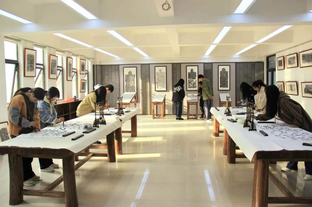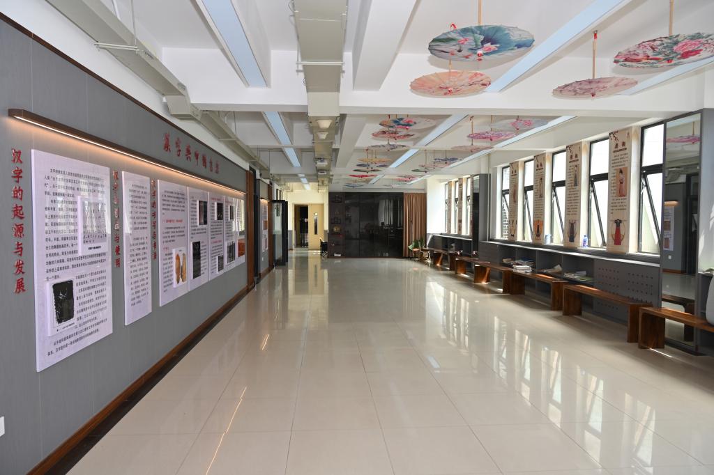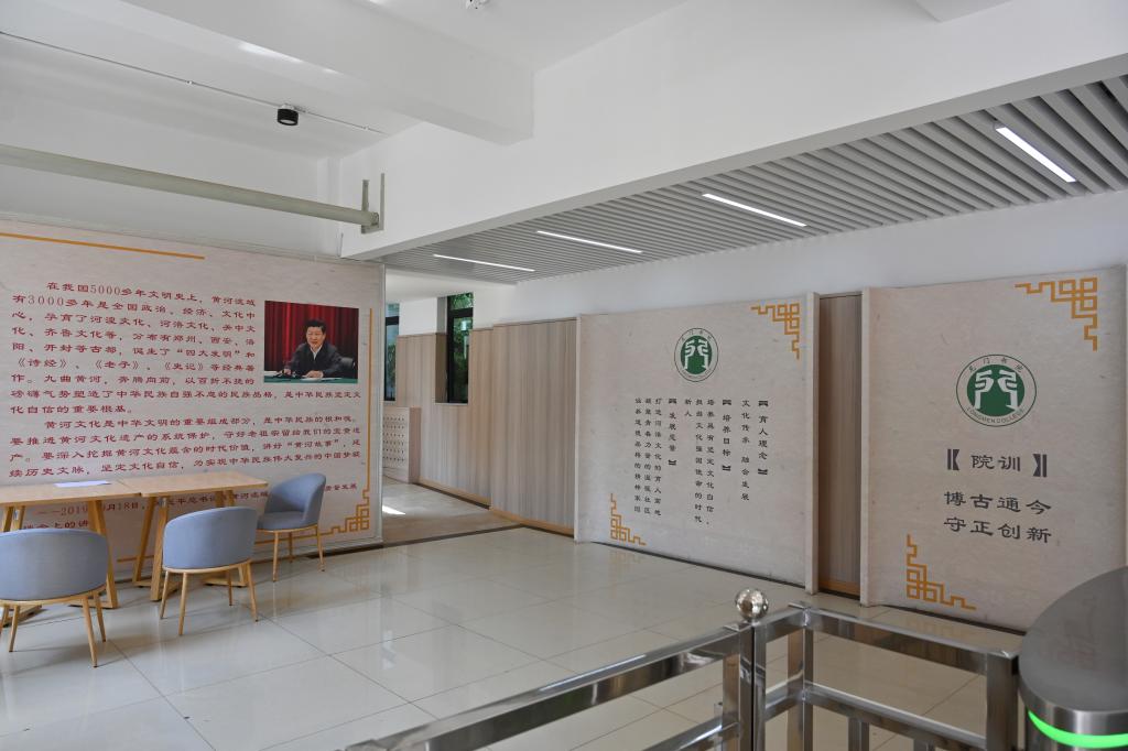 龙门书院1号学生社区成立于2022年8月。书院构筑了以河洛文化为底蕴的“一厅、两馆、三廊、四区”育人空间。其中一厅指河洛文化厅,以习近平总书记关于中华优秀传统文化指示批示精神为引领,从 “一个根源三个脉络”(华夏之源,都城文明、礼乐思想、开放包容)展示了河洛文化的根元素和丰富内涵。两馆为非遗艺术馆和魏碑艺术馆,非遗艺术馆墙面上展示了13幅能够代表洛阳,具有历史价值、美学价值和文化价值的非遗代表性项目展示板。按照国家级、省级、市级进行排列,包括河洛大鼓、洛阳宫灯、洛阳水席等。馆内陈列有洛阳铲、唐三彩、青铜器、澄泥砚、剪纸等非遗展品。魏碑艺术馆内展示了传拓技艺,为同学们提供了笔墨纸砚,打造沉浸式书法练习空间。三廊包括汉服体验廊、非遗体验廊、多功能活动廊,汉服体验廊展示了从商朝到明朝的汉服演变史,详细介绍了我国汉服的变迁,展示着传统服饰之美,和时代的审美和科技的发展,以及悠久的文化传统和深厚的历史底蕴。该廊旨在让学生穿汉服、学汉礼,感受传统文化魅力,提高礼仪文化水平。非遗体验廊为学生打造了亲手制作非遗作品的活动空间,学生在这里开展剪纸、泥塑制作等非遗作品创作实践,让同学们了解非遗、自觉学习、传承创新非遗技艺。四区有生活区、园丁区、自习区、运动区,所有的区域都由学生自主管理,师生携手打造“一站式”学生社区,让学生在潜移默化中受河洛文化的熏陶,在寓教于乐中促进全面发展。
