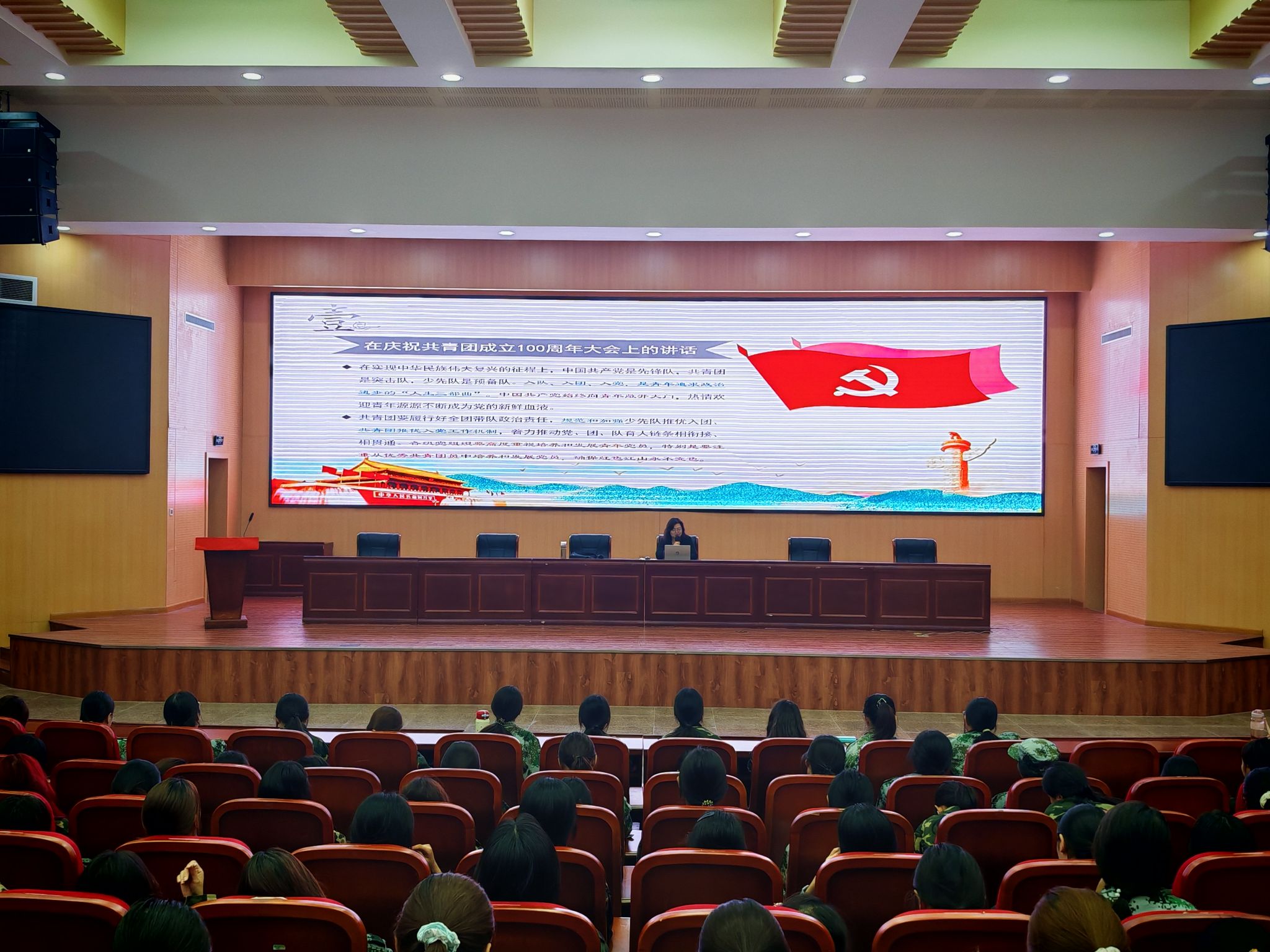 党委副书记朱丹以“弘扬伟大建党精神,争做忠诚于党的新时代好青年”为题,为同学们系统阐释了入团入党的标准与要求,让有准备在大学入团入党的同学明确努力方向,为其追求思想进步、实现个人理想奠定了坚实基础。