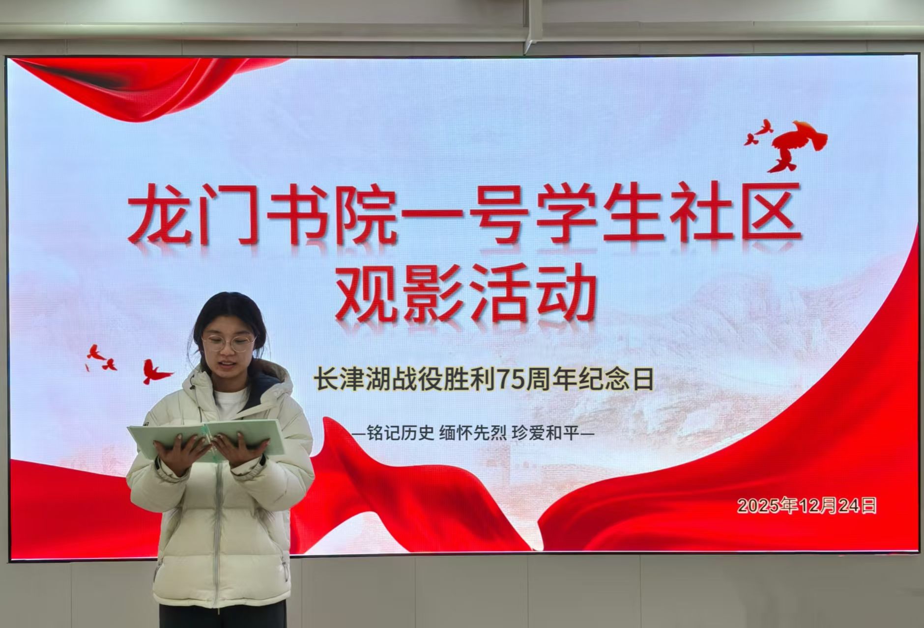 为传承红色基因,厚植爱国情怀,2025年12月24日18:30,龙门书院一号学生社区组织40名预备党员在社区三楼非遗馆集中观看爱国主义影片《志愿军:雄兵出击》,引导青年学子在光影中重温峥嵘岁月,在感动中汲取奋进力量。