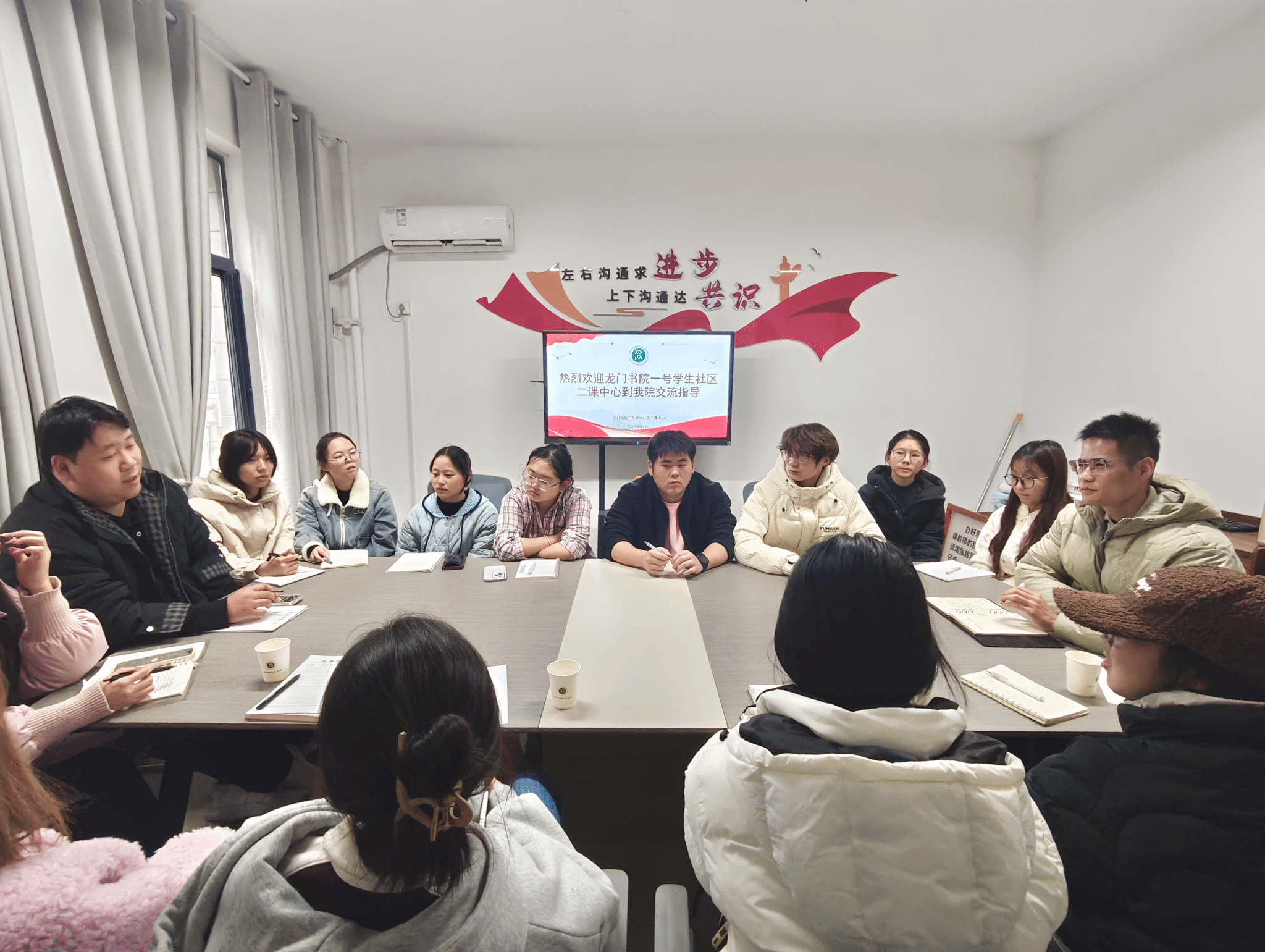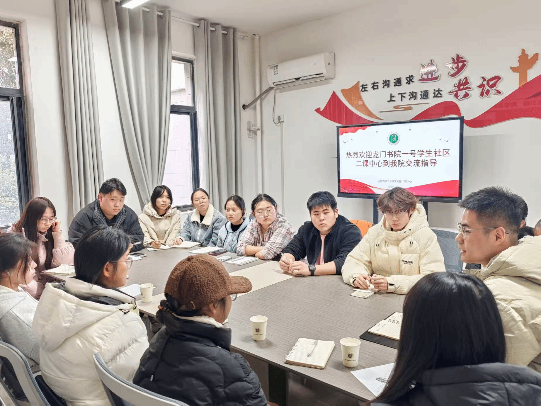 12月26日下午,龙门书院一号学生社区与问礼书院三号学生社区二课中心办公室学生骨干齐聚问礼三号学生社区2101会议室。双方以"互鉴经验、凝聚共识、共谋提升"为目标,通过专题分享、案例剖析等形式,就第二课堂相关工作开展交流座谈。