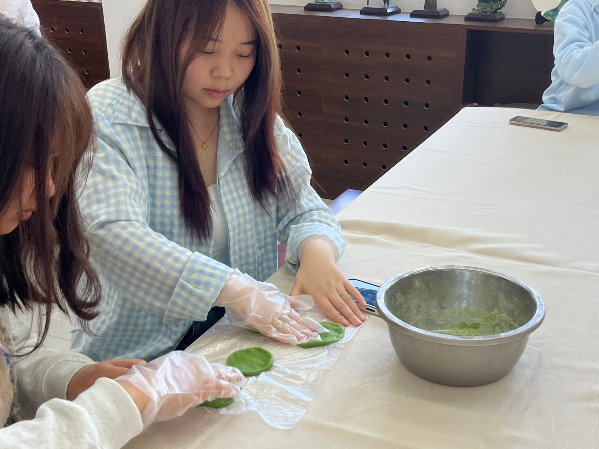 4月4日,“清明寄思,青团传韵”青团制作活动在书院三楼非遗艺术馆展开。活动从清明节的节气起源与节日演变切入,主持人为同学们系统讲解了其中“慎终追远、迎春向新”的文化内涵,增进大家对这一传统节日的理解。随后,同学们动手制作青团,在揉捏成形的过程中体验传统手艺的匠心,也在互帮互助中传递温暖。活动还安排了习俗分享、互动问答与趣味游戏环节,大家在交流中深化对清明文化的体认,现场气氛温馨融洽。