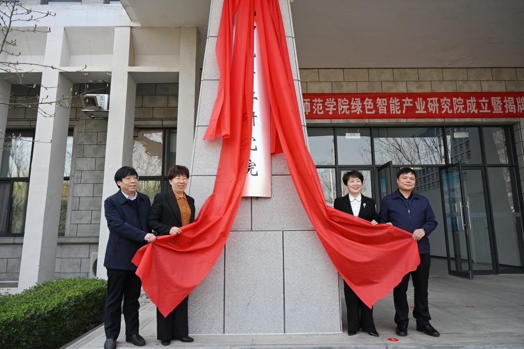 郭改英、郭海明、叶惠玲和张战伟共同为“洛阳师范学院绿色智能产业研究院”揭牌。