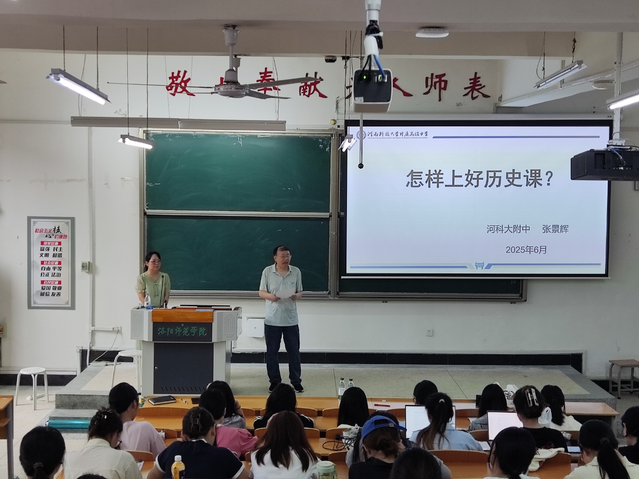 6月19日下午,河南科技大学附属高级中学张景辉老师,应邀为历史学专业100余名师生带来了一场题目为“怎样上好历史课”的讲座,副院长张忠主持活动。