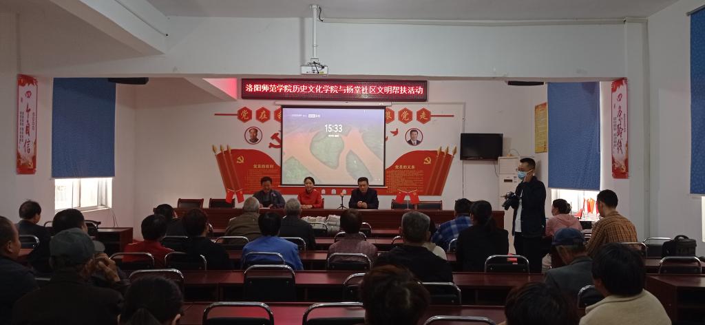 4月28日下午,我院班子成员和教师党员一行20余人,赴伊滨区诸葛镇杨堂社区开展理论宣讲、文化下乡、文明督导、捐赠书籍等文明创建帮扶工作,社区两委全体成员和部分群众参加活动。