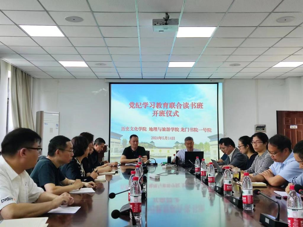 为深入贯彻落实中央、省委有关通知精神,按照校党委统一部署,5月14日—15日,地理与旅游学院、历史文化学院、龙门书院一号院在A2-201举办党纪学习教育联合读书班,学院书院党委全体处级领导、党委委员、党支部书记、系主任、辅导员参加本次读书班。本次党纪学习教育联合读书班共两天,学习方式包括交流研讨、专家辅导、自主学习、警示教育等内容。