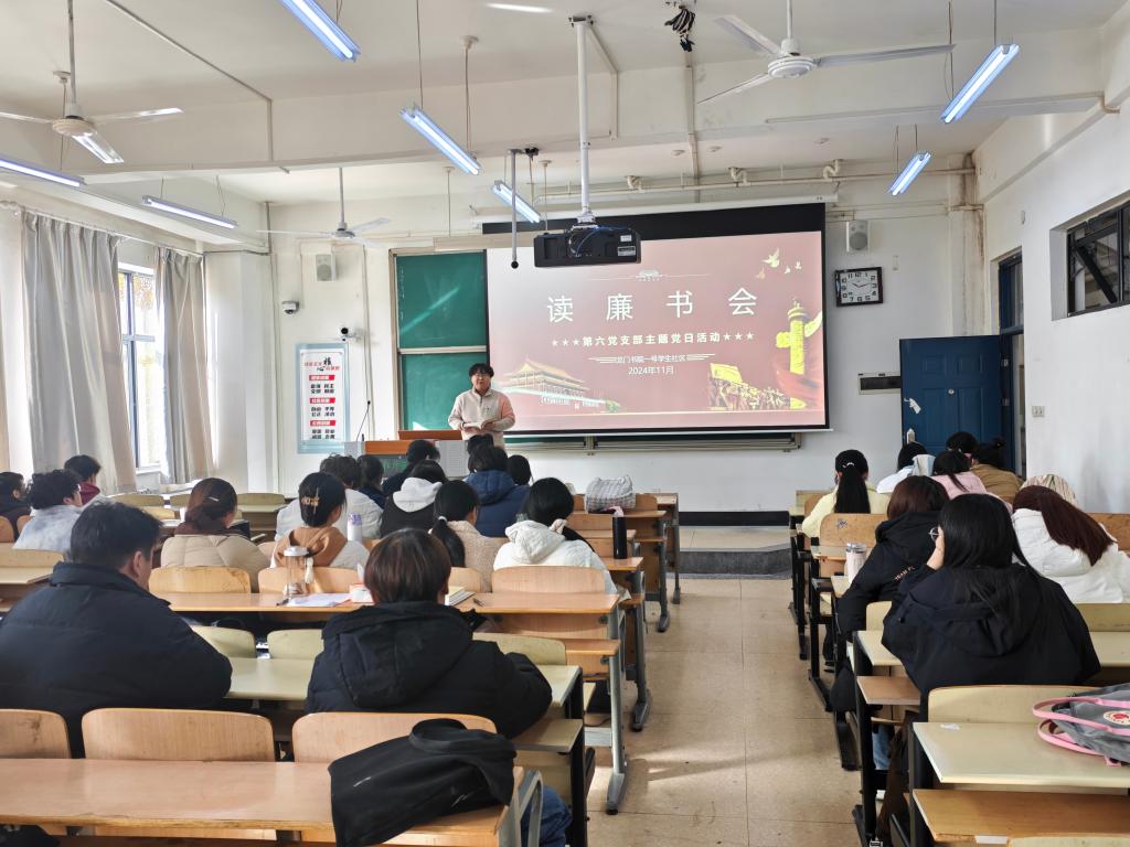 为深入贯彻中共中央办公厅《关于加强新时代廉洁文化建设的意见》,加强新时代廉洁教育,纵深推进“清廉洛师”建设,培养学生党员敬廉崇洁的价值观念,持续打造我院“学史话廉扬清风”活动品牌,11月21日,龙门书院一号学生社区学生第六党支部在A4-305举办“读廉书会”主题党日活动。
