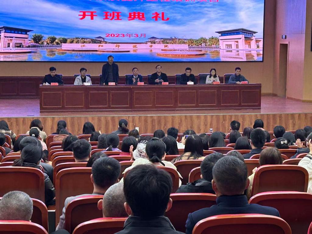 3月19日上午,河南省2022年义务教育师资薄弱环节改善暨中小学教师素质提升工程培训开班典礼,在我校逸夫楼G1-112报告厅举行。副校长赵海彦,继续教育学院院长冯虎成,我院书记吴浩,其他参训单位负责人、培训班班主任和全体学员出席了开班典礼。开班典礼由继续教育学院副院长王众杰主持
