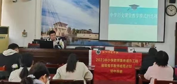 3月9日中小学教师素质提升工程省级骨干教师培训计划初中历史学科请到了重庆邮电大学杨维老师给大家授课,杨维老师就中学历史课堂教学模式的相关问题对培训学员进行了指导。