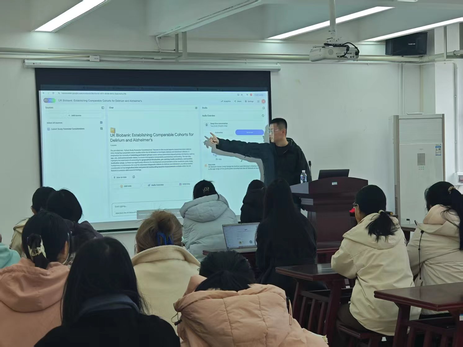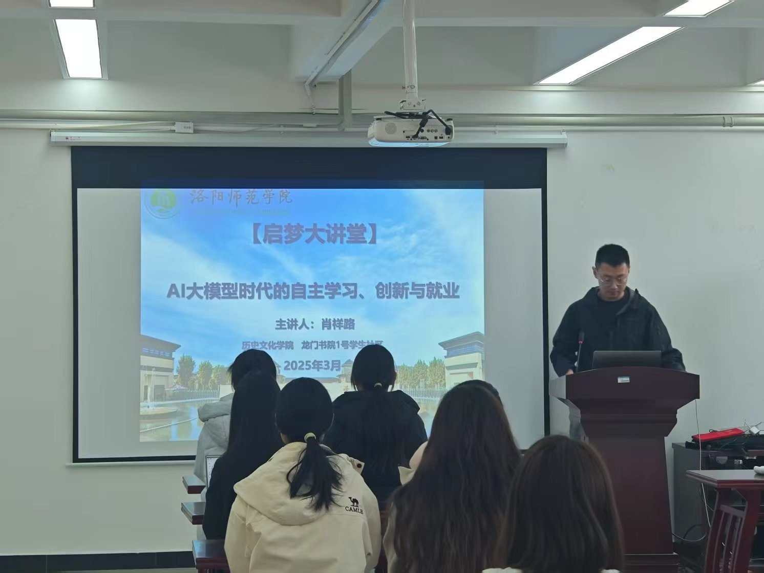 3月29日上午,我院联合龙门书院一号学生社区共同举办“AI大模型时代的自主学习、创新与就业”启梦大讲堂专题讲座。此次活动邀请德睿制药资深数据科学家、帝国理工学院生物工程专业在读博士肖祥路先生作为主讲人,学院党委副书记朱丹、就业创业办公室副主任孙俊伟出席,在校学生代表到场聆听,龙门书院一号学生社区三楼非遗艺术馆座无虚席。