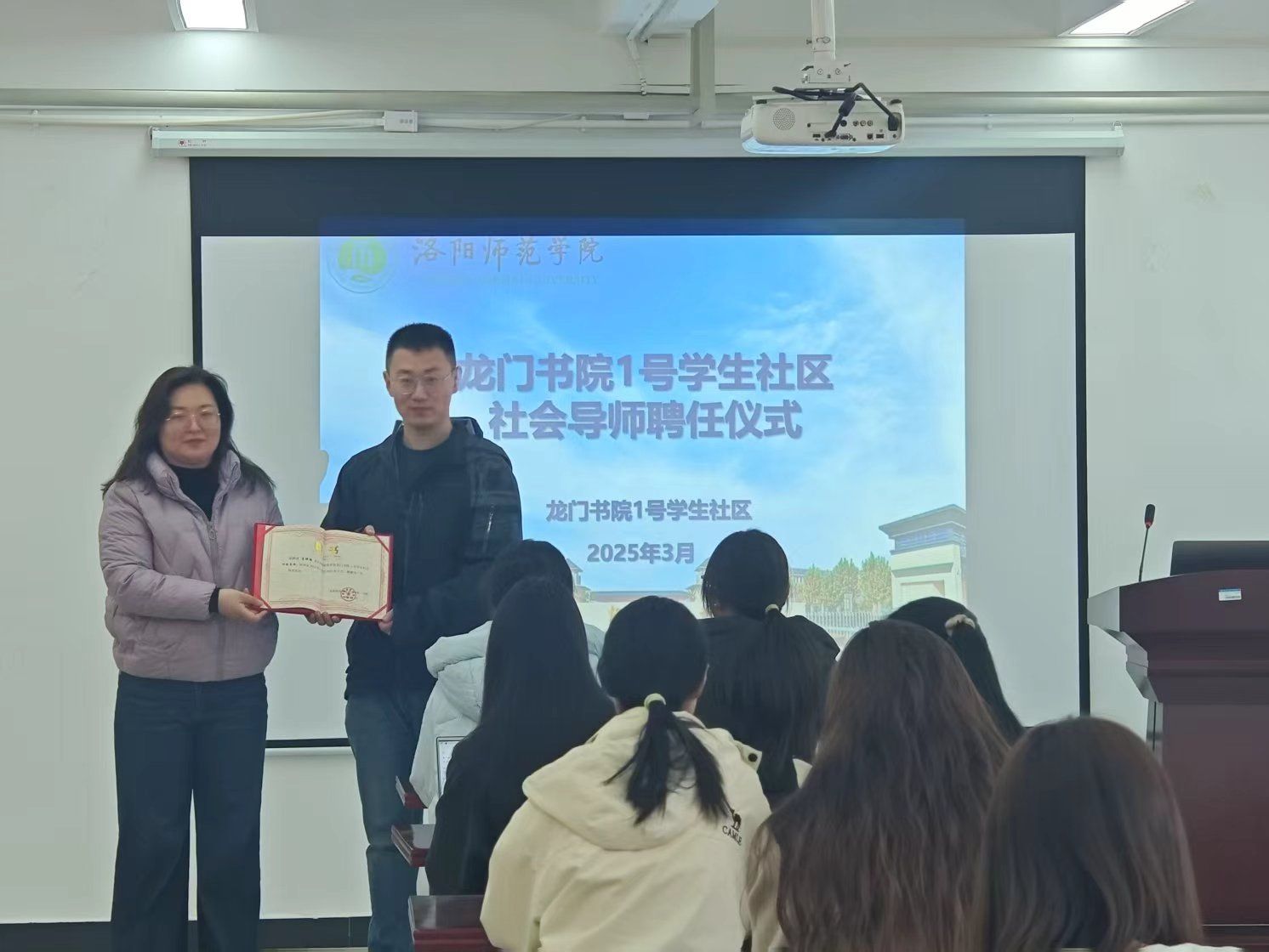 首先,孙俊伟对肖祥路博士进行简要介绍。朱丹对肖博士的到来表示热烈欢迎,并颁发龙门书院一号学生社区“社会导师”聘书。