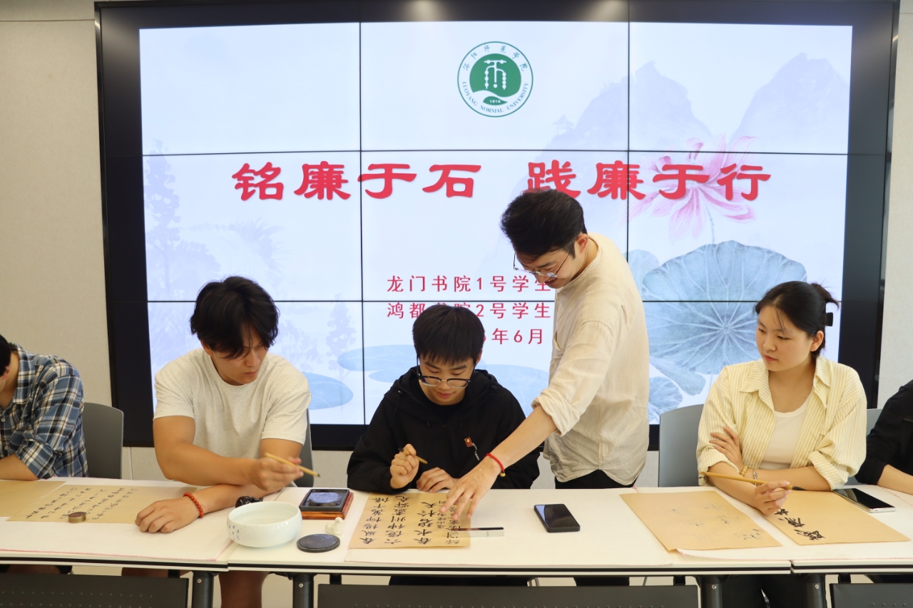为深化廉洁文化教育,引导青年扣好“人生第一粒扣子”,6月13日下午,我院组织师生赴鸿都书院2号学生社区开展“铭廉于石·践廉于行”主题篆刻活动。学院党委负责同志、辅导员及部分学生代表齐聚一堂,以刀为笔,刻石铭廉。