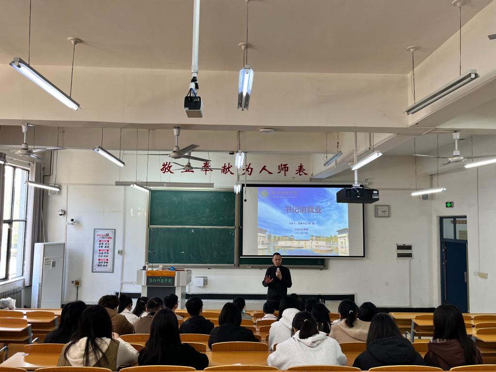 刘广锐全面系统分析了2025届毕业生当前的就业形势及政策,围绕高校毕业生总体就业形势、历史类专业就业形势特点、毕业生慢就业原因及破解方式、精准求职准备策略等方面展开讲解,引导学生积极调整就业心态,转变就业观念,三个不同专业的学生都要明确自己的就业方向,不断尝试。针对目前存在的扎堆考研二战现象,他提出三点期望:一是要正确看待,理性对待;二是要端正观念,先就业后择业;三是要提高自信,从容应试。讲座最后,他勉励2025届毕业生,在求职过程中一定要防范各类利用就业心理的电信网络诈骗,紧紧把握求职关键期,积极参加各类校园招聘会,坚定信心,树立正确的择业观。