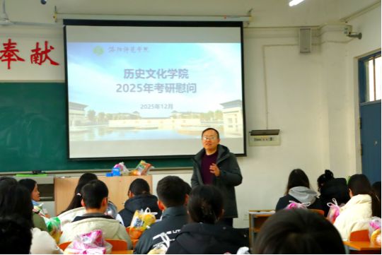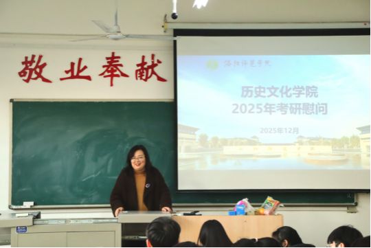 为增强考研学子应试信心,缓解备考压力,12月5日下午,历史文化学院在308教室开展“考研慰问”活动。学院党委副书记朱丹、副院长张忠、孙俊伟老师以及2026届考研学子共同参与。