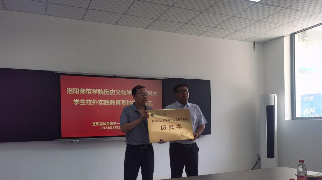 5月24日,我院教学副院长张忠带领教法教研室教师一行,到宜阳县和伊川县我院实习基地,举行新文科大学生实践基地挂牌仪式和2024版历史学专业培养方案修订座谈会。