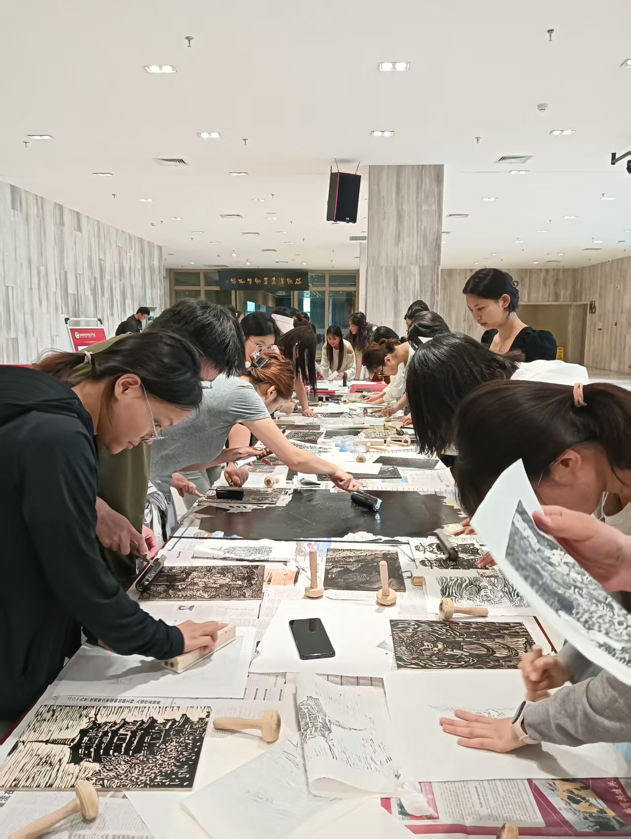 在魏龙星老师的带领下,学生们依次参观了洛阳汉画艺术博物馆、河洛古代石刻博物馆及古籍书库,并动手参与了古籍制作、装帧及雕版印刷等体验式劳动,深刻感受古代文献的持久魅力。在“古籍里的黄河”专题展区,学生们对珍贵藏品进行了细致调研,深入了解展品背景,并协助工作人员优化陈列设置。课程尾声,学生们主动承担了古籍书库的环境清洁工作,认真擦拭书架、桌椅,清扫垃圾。
