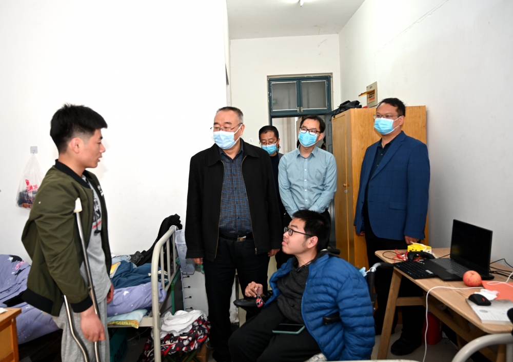 4月3日下午,校党委书记郭改英、校长梁留科、党委副书记宋文献深入学生公寓,及时了解清明假期宿舍区的疫情防控、管理服务及学生在校学习生活情况。