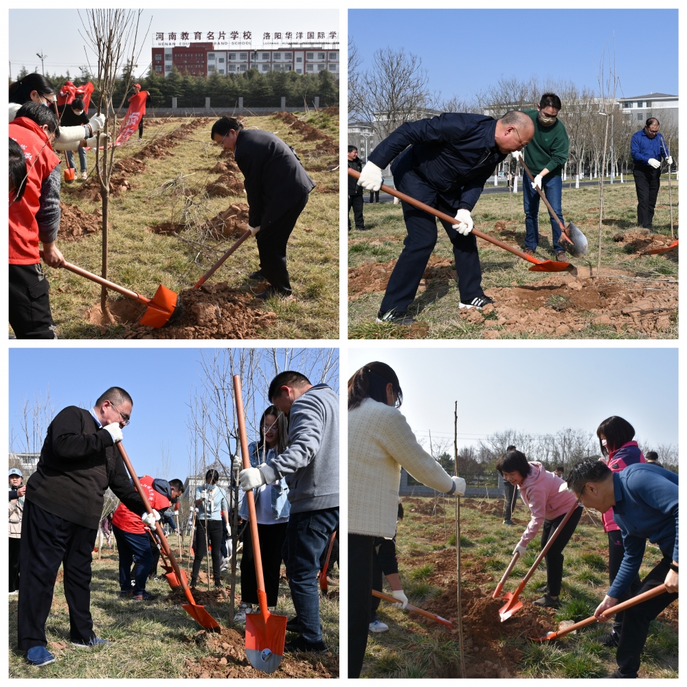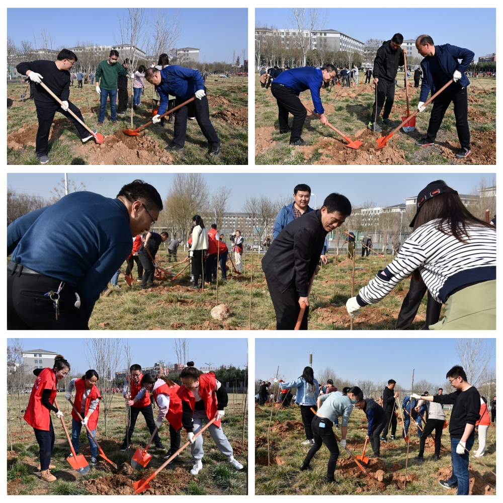 又是一年春光好,植树添绿正当时。在第44个植树节来临之际,3月10日下午,在后勤服务集团的积极配合和大力支持下,机关党委组织开展了“我为校园添新绿 机关党员在行动”义务植树主题党日活动。校党委副书记宋文献、郭新民,副校长李晓彦、庞彩霞,机关各党支部书记及党员代表70余人携手为校园再添新绿。