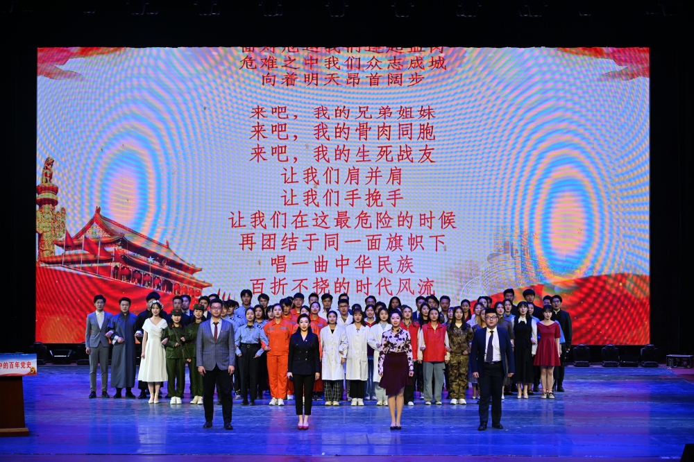 4月21日下午,“诗词中的百年党史”专场演出在我校大学生艺术活动中心举办。校党委副书记宋文献、郭新民,副校长李晓彦、张运礼、赵邦屯,学校全体中层干部及各学院师生代表共500余人到场聆听。