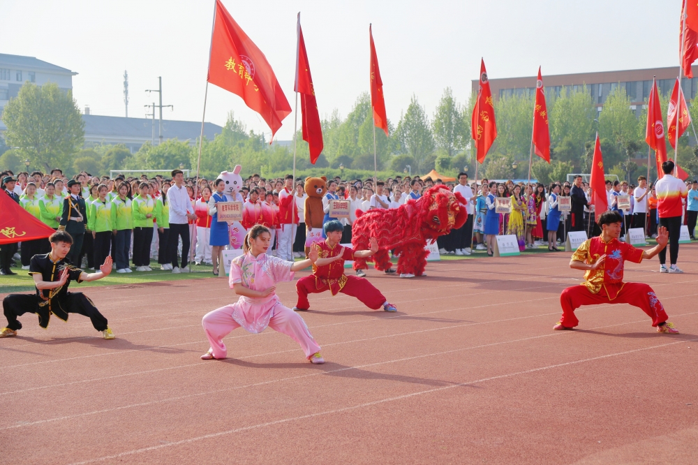 伴随着雄壮的国歌和昂扬的《运动员进行曲》,国旗护卫队、教育硕士研究生代表队、各学院运动员方阵、教职工代表队迎着朝阳依次入场,迈着整齐划一、铿锵有力的步伐走过主席台。其中,音乐学院代表队带来的舞蹈表演活力四射,充分展示了青年学子意气风发的精神面貌;继续教育学院代表队身着风格独特的民族服饰,寄托了“中华民族一家亲,同心共筑中国梦”的美好愿景;踢跳翻蹬、立卧滚抖、勇猛憨厚、惊险逗趣,体育学院代表队用铿锵有力、气势雄伟的舞狮表演将全场气氛推向高潮,赢得了观众雷鸣般的掌声。