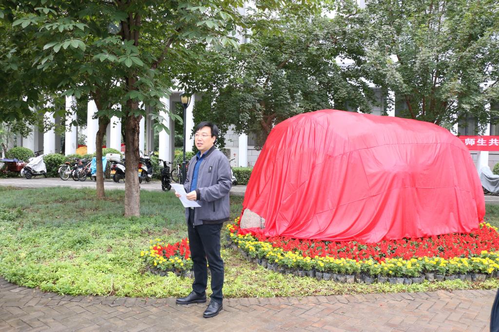 秋雨绵绵,瑞石临门。10月2日上午,物理与电子信息学院校友捐赠院训石揭幕仪式在物理楼举行。物理系1977级校友、新安校友会会长武慧芳,物理系2000级校友代表参加揭幕仪式。副校长冯恒强,校友工作办公室负责人,物理与电子信息学院领导班子,教师代表出席活动。揭幕式由校友工作办公室主任郭可悫主持。