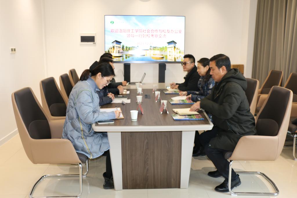 12月27日,洛阳理工学院社会合作与校友办公室主任杜旻,副主任付俊强,校友服务科苗超鹏一行到我校考察交流。校友工作办公室(教育基金会办公室)全体工作人员参加交流活动,会议由副主任杜胜利主持。