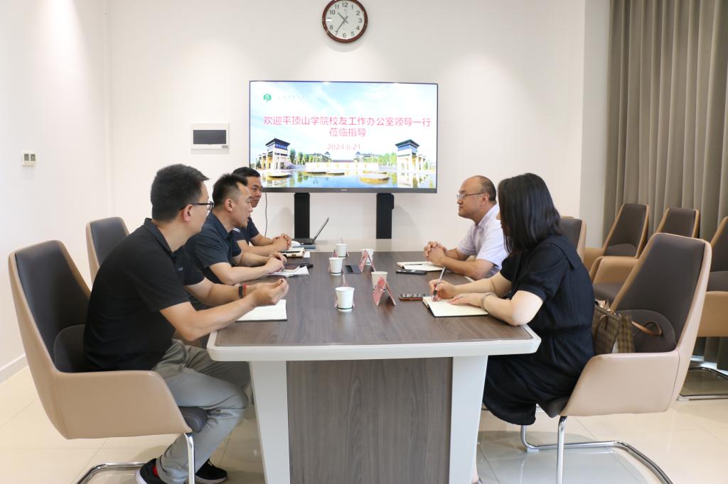 6月21日,平顶山学院校友工作办公室主任梁广成一行来我校考察交流校友与基金工作,座谈会在成均楼A118会议室举行,校友工作办公室(教育基金会办公室)主任郭可悫,副主任杜胜利出席会议。