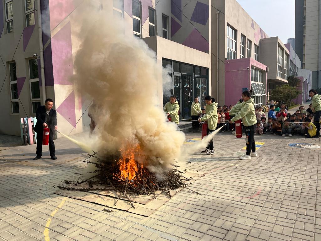 最后,灭火演练环节将活动推向了高潮。孩子们纷纷拿起灭火器,按照“一看二摇三拔四喷”的口诀,对准火源进行实战操作。虽然初次尝试略显生疏,但在老师们的耐心指导和帮助下,大家逐渐掌握了正确的使用方法,进一步加深了对消防安全知识的理解和记忆。