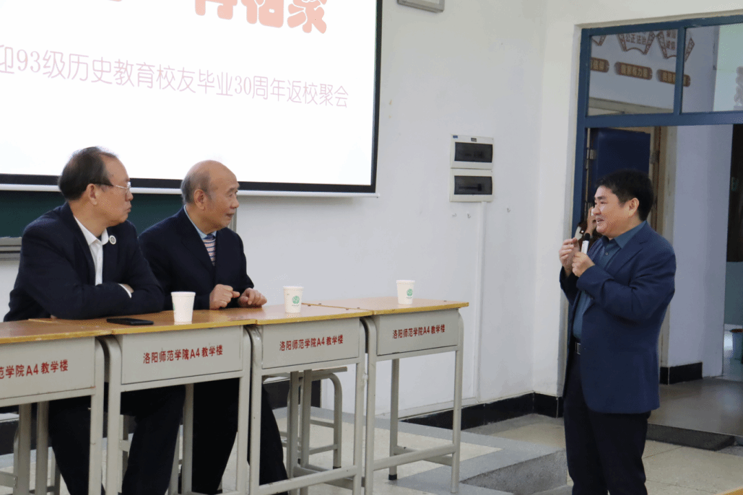 仪式结束后,教师代表董延寿、郭绍林、高华与校友们移步102教室,重温课堂时光。在班长的组织下,一场跨越三十年的点名仪式让众人仿佛重回青葱岁月。校友们踊跃发言,分享人生经历,表达对恩师与同窗的感激与祝福。他们中有的耕耘教坛,有的服务社会,有的驰骋商界,皆在不同岗位上践行着“敬业奉献、为人师表”的校训,成为母校的骄傲。最后,校友代表们参观了校园与博物馆,感受母校的发展变迁,为这场三十年之约画上圆满句号。