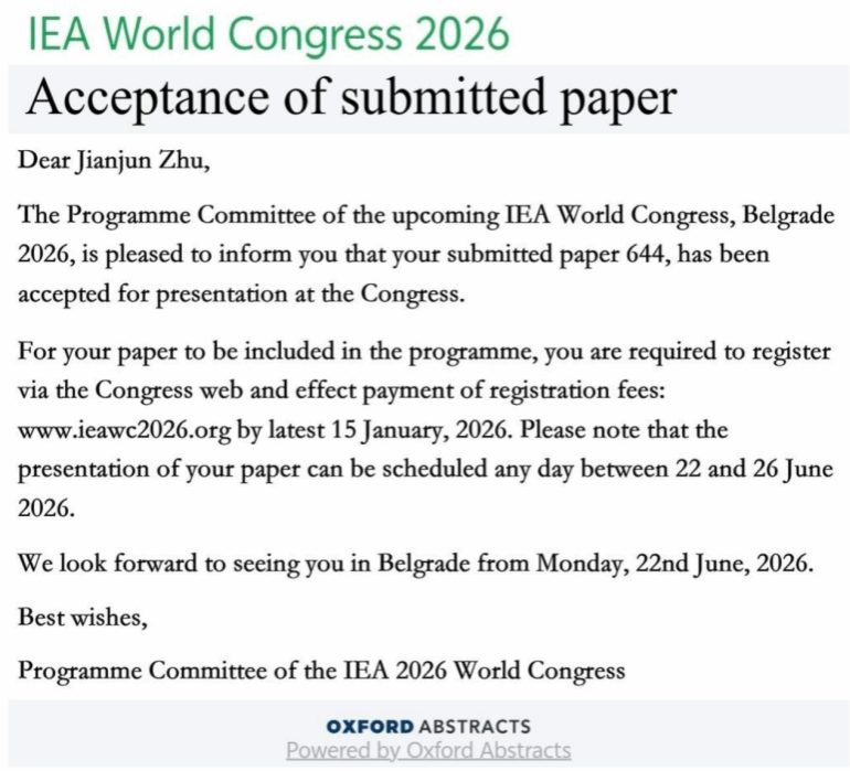 此次论文入选,不仅是朱建军先生个人学术成就的国际认可,亦是中国经济学界独立研究能力迈向世界前沿的生动体现。这既是他个人的荣誉,也是其母校洛阳师专的骄傲,更是中国经济学研究走向世界的重要一步。