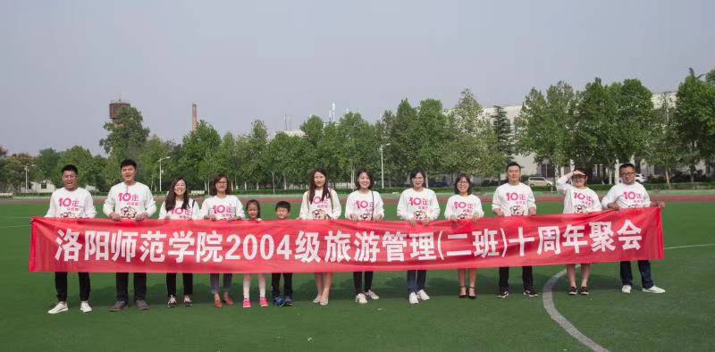 在学院门前,同学们看到“热烈欢迎2004级旅游管理班毕业生回家”的字幕,禁不住留下激动的热泪。大家在学院门前合影留念,并一起喊出心声:“十年了,我们回来了”。