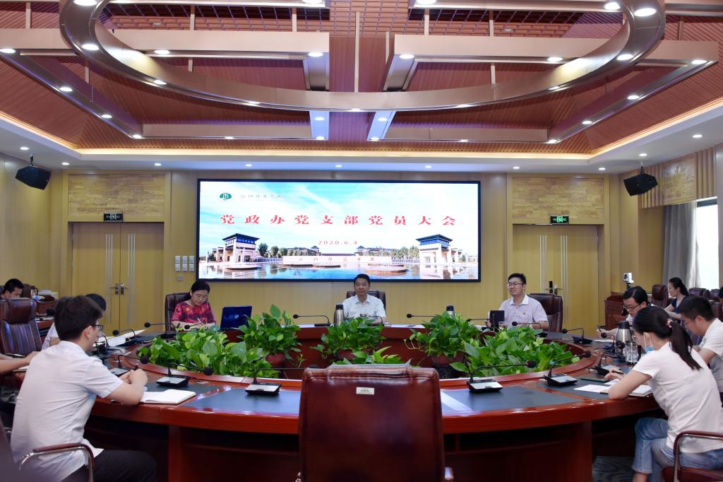 6月4日下午,党政办党支部在成均楼B301会议室召开党员大会,会议由支部书记李柯主持,校党委书记王洪彬作为普通党员参加会议。